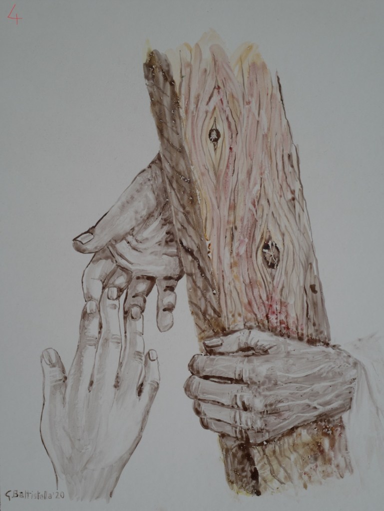Il suo volto esprime drammatico stupore, strazio, ma anche incoraggiamento. C’è uno slancio sorprendente, una consapevolezza dinamica, nella sua figura.